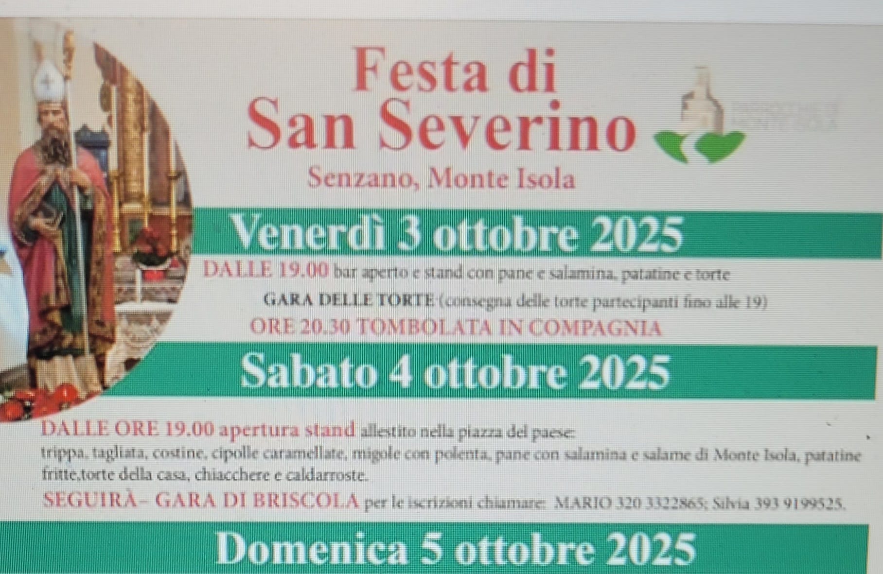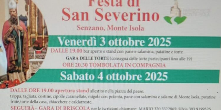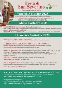 Festa di San Severino 2025 ottobre dal venerdì 03 a domenica 05 3 ottobre 2025 Posted Under: Eventi 2025 Nessun commento San Severino 2025 Festa di San Severino in località Senzano